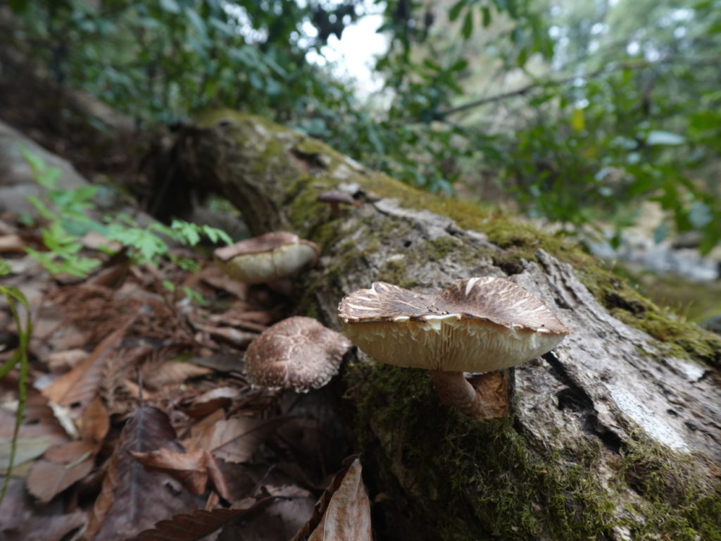 他の場所に全くキノコがない状況なのに、この倒木のシイタケだけは元気すぎます。